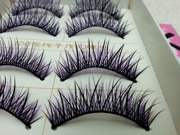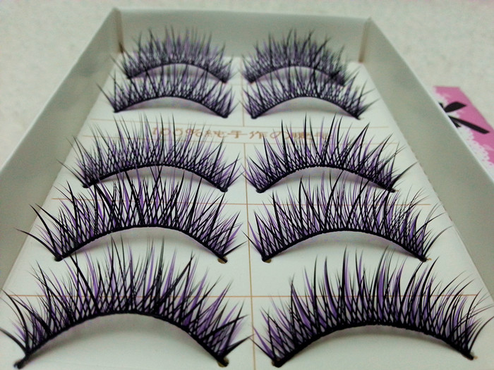 072 false eyelashes natural thick black purple cross cotton thread black hard stem messy eyelashes big eyes