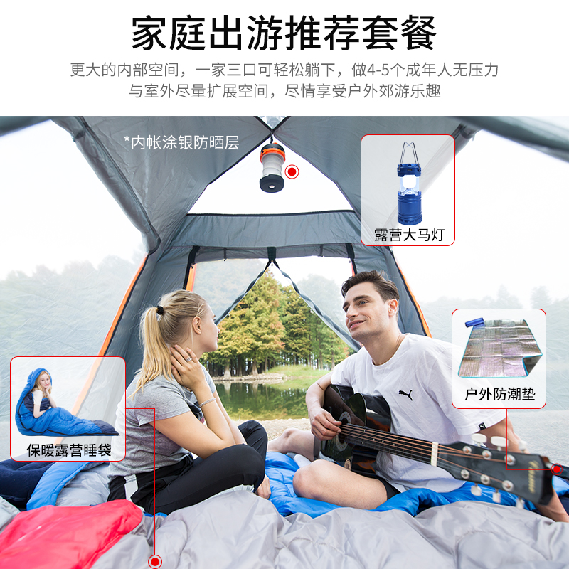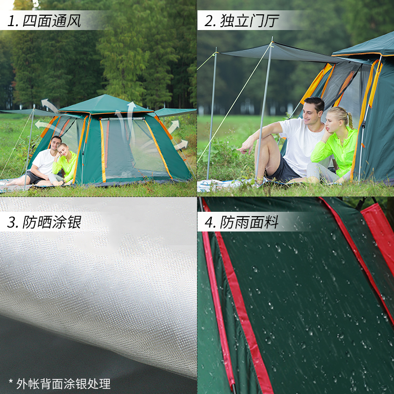 Tent outdoor 3-4 people automatic 2 people single household double thickened rainproof camping Family camping tent