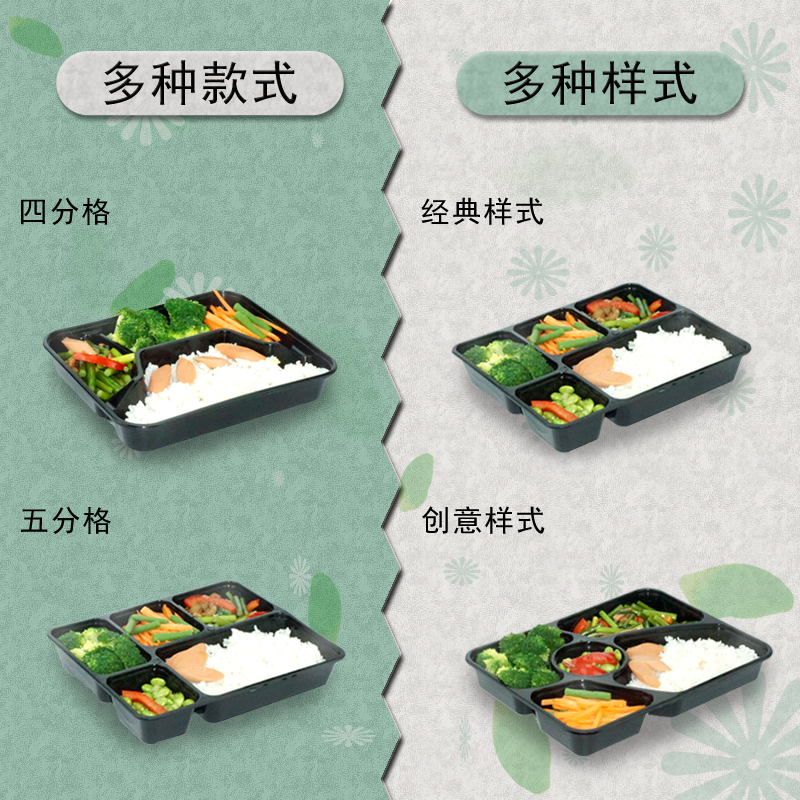 Transparent small five-compartment 150 box 1080 ml flat lid