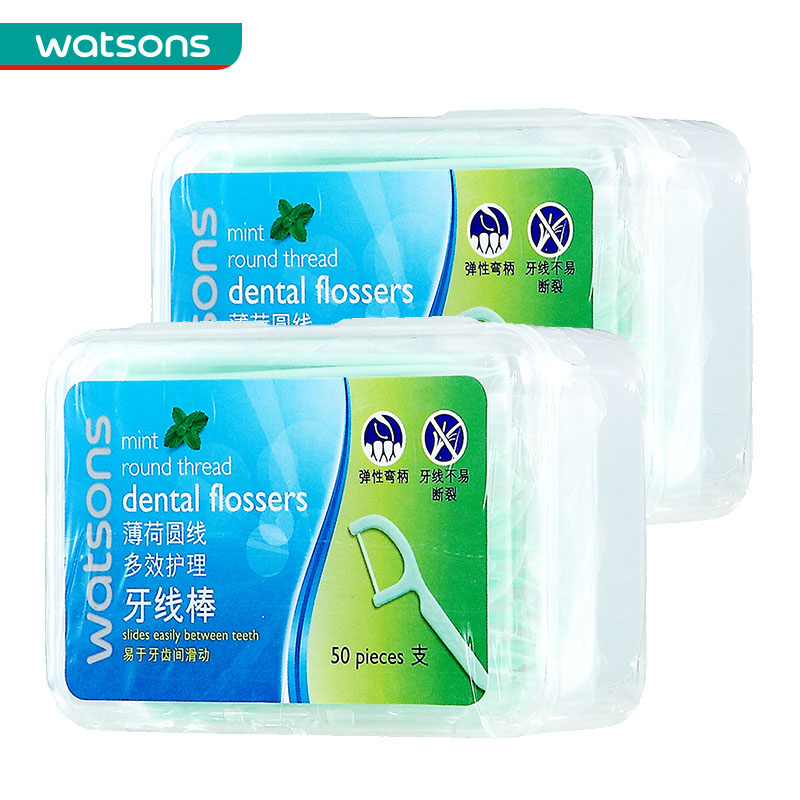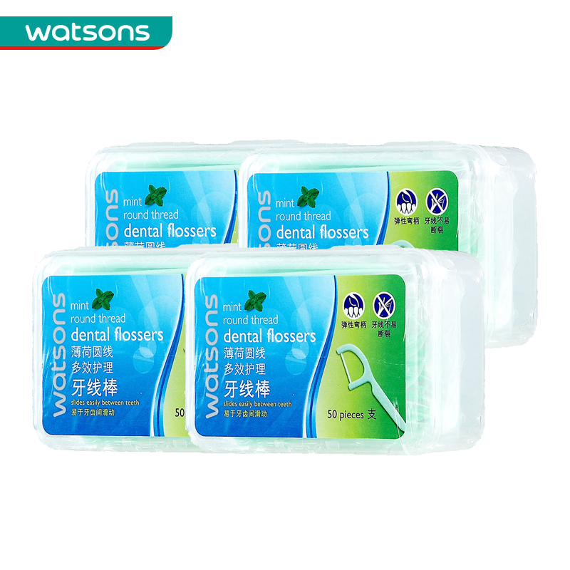 (Watsons) Peppermint Round Line Multi-Care Dental Floss Bar 50 *4 Box Easy to clean the gap between teeth