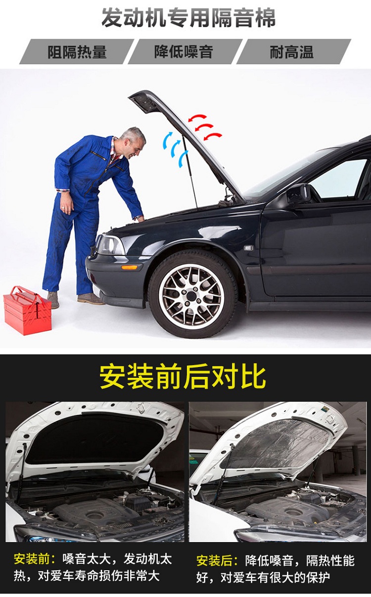 Car engine compartment sound insulation cotton firewall noise reduction sound device hood universal high temperature resistant self-adhesive material