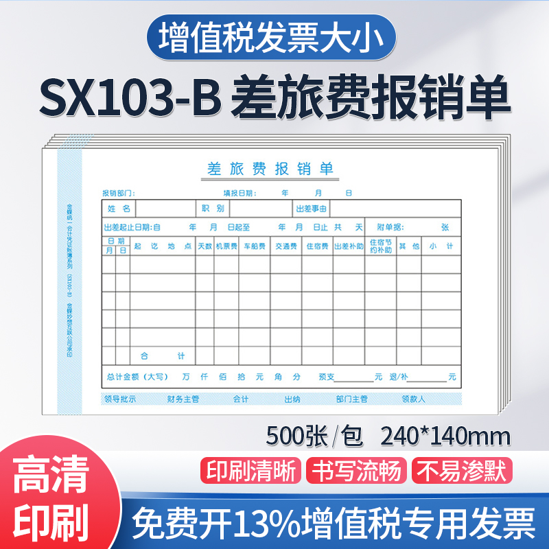 Kingdee financial software supporting handwritten document Accounting Travel expense reimbursement form SX103-B Invoice version 240*140mm Original document adhesive single Loan payment receipt approval form Ledger