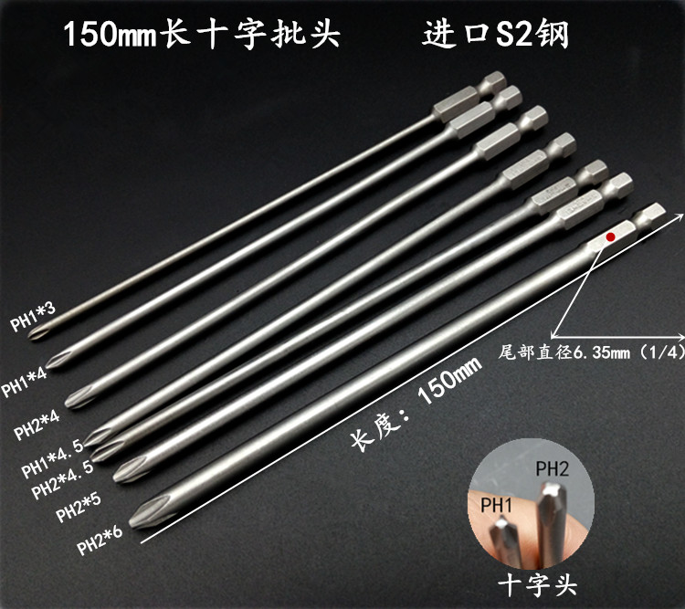 Shaowei lengthened cross batch head pneumatic screwdriver cross batch S2 steel pneumatic screwdriver batch head screwdriver head 200mm long