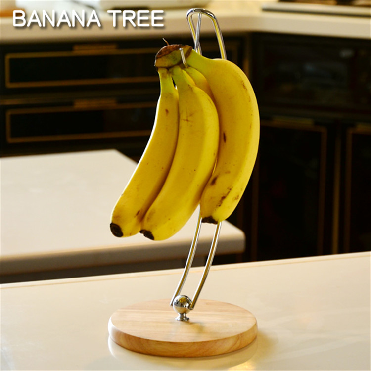 Bijamei kitchen rack Banana rack Vertical multi-function hook shelf Fruit rack anti-rust iron solid wood bottom