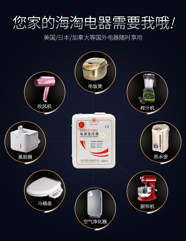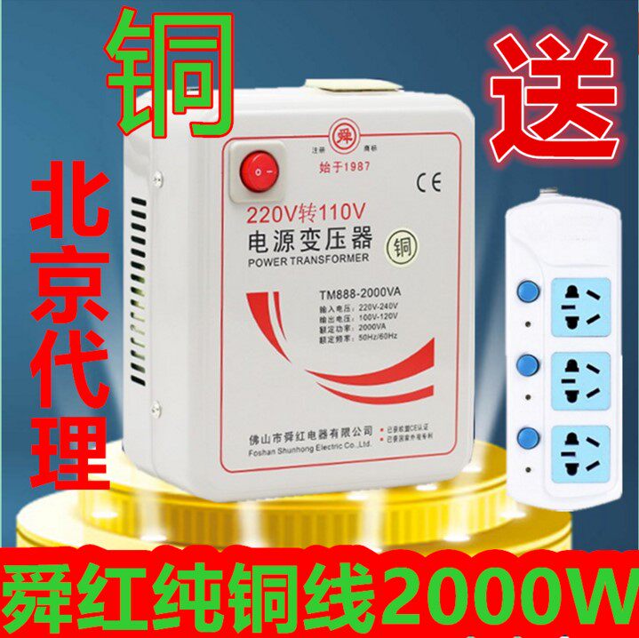 Sun Red Transformer Full Copper Wire Foot Power 2000W Japanese Elephant Seal Tiger Card electric rice cooker Special 220V turns 110V
