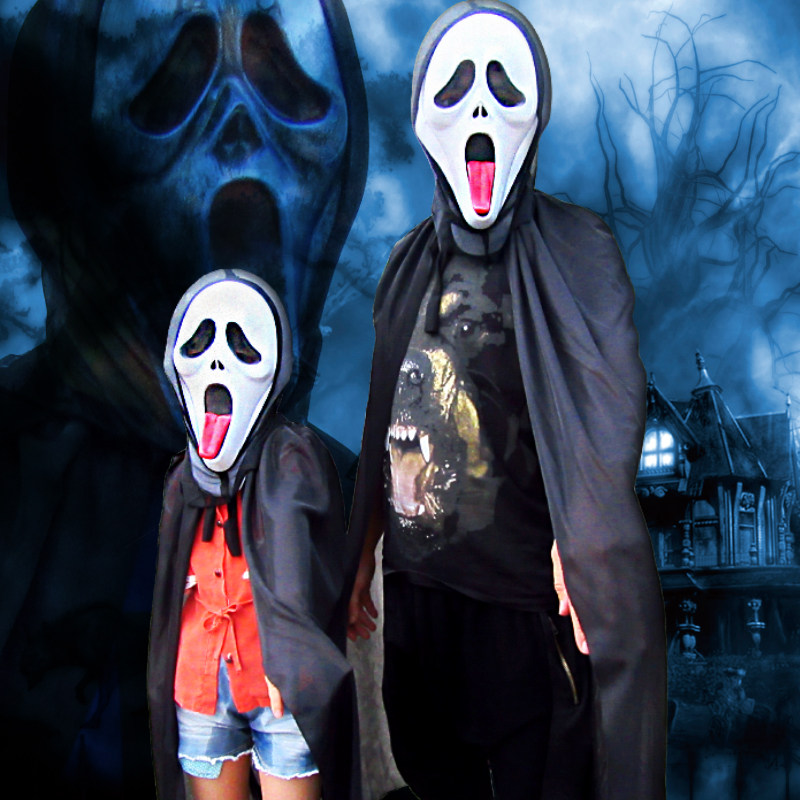 Xibao Halloween costume dress up props pure black cloak suit wizard witch costume cloak children adult