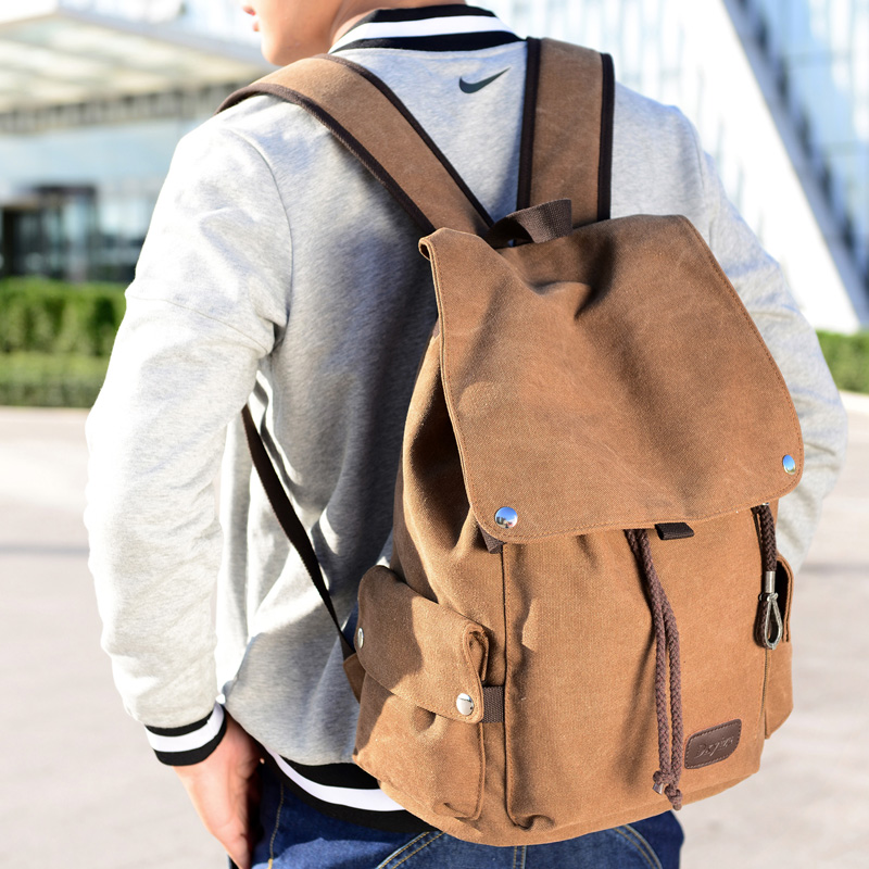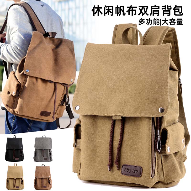 Large Capacity Bucket Bag Men Fashion Casual Canvas Double Shoulder Bag Han Version Tide Travel BAG COMPUTER BAG NEW SCHOOL BAG