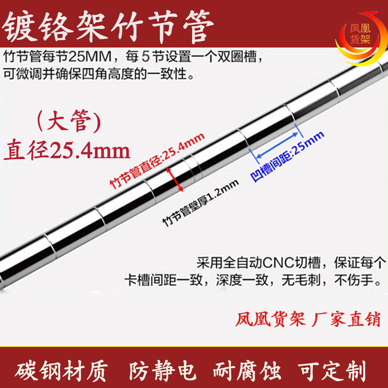 Carbon steel chromed pipe antistatic column pipe diameter 25 4mm Bamboo joint pipe network shelf accessories shelving columns