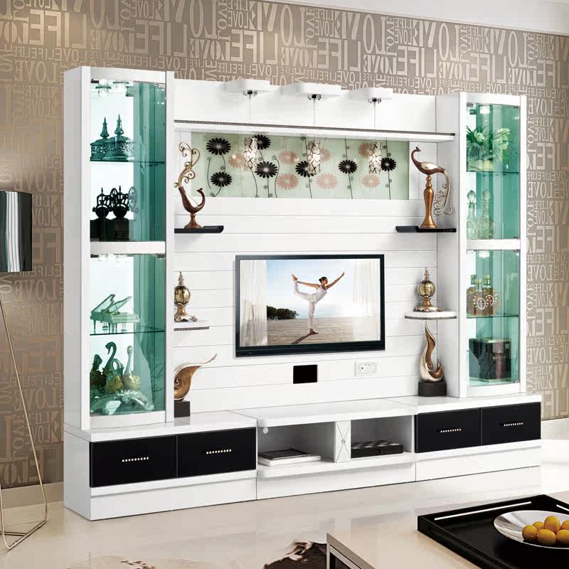 TV Cabinet Video Wall Wine Cabinet Floor Cabinet Modern Background Wall Fashion Living Room Combination Cabinet 3 Meters Multifunctional Furniture