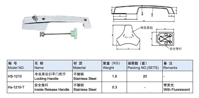 Stainless steel 1210 refrigerated storage Back to flat door handle Refrigerated garage handle flat door