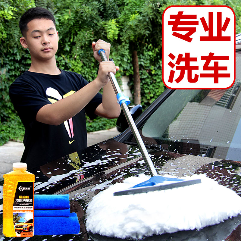 Car wash mop does not hurt the car brush brush soft wool car special wipe artifact long handle tool telescopic non-pure cotton