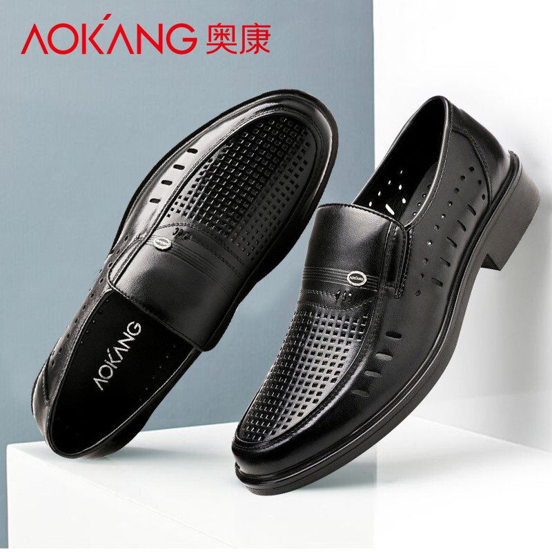 Okom Leather Shoes Men's Shoes Summer Thin breathable comfort Men's Inron Business Leisure Authentic Leather Soft-bottom Shoes
