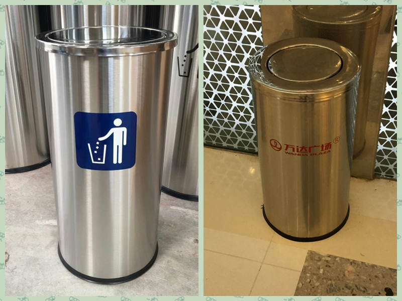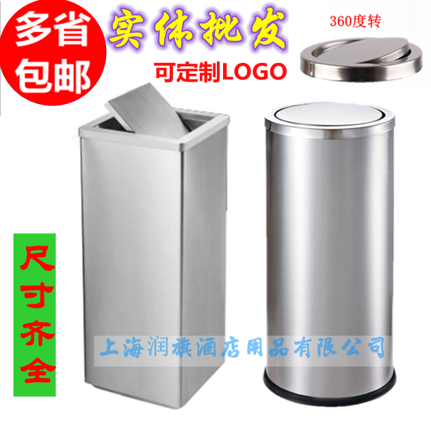 Stainless steel trash can Hotel lobby vertical clamshell round seat ground peel bucket Large Hong Kong-style with inner bucket