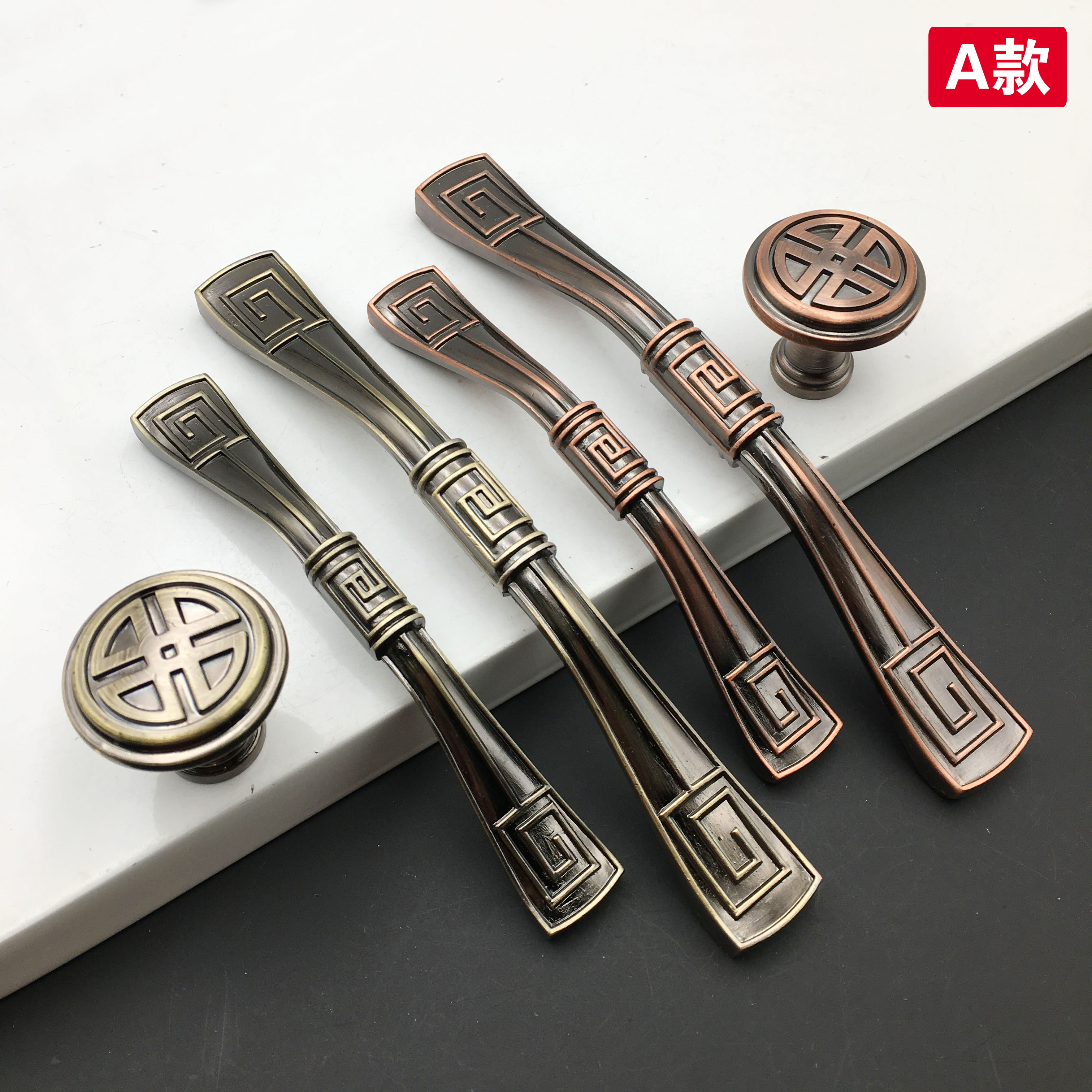 Chinese classic solid thickened red bronze furniture drawer handle antique green bronze pastoral clothes overall cabinet door handle