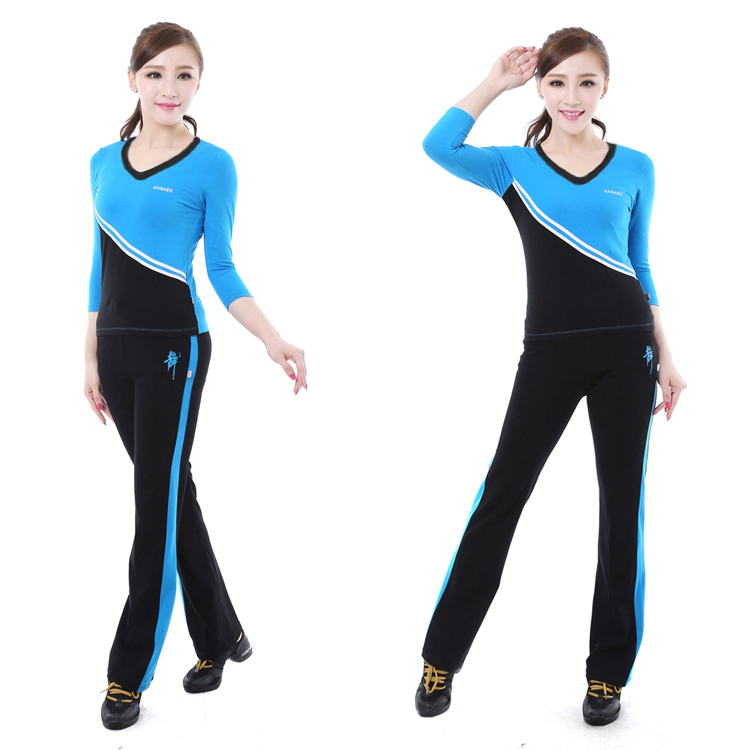Adult square dance costume Women's long sleeve suit Cotton jump suit Practice group performance Large size aerobics suit