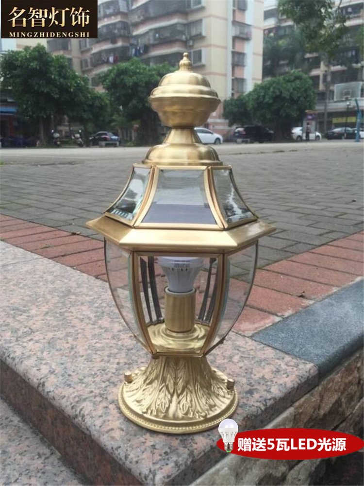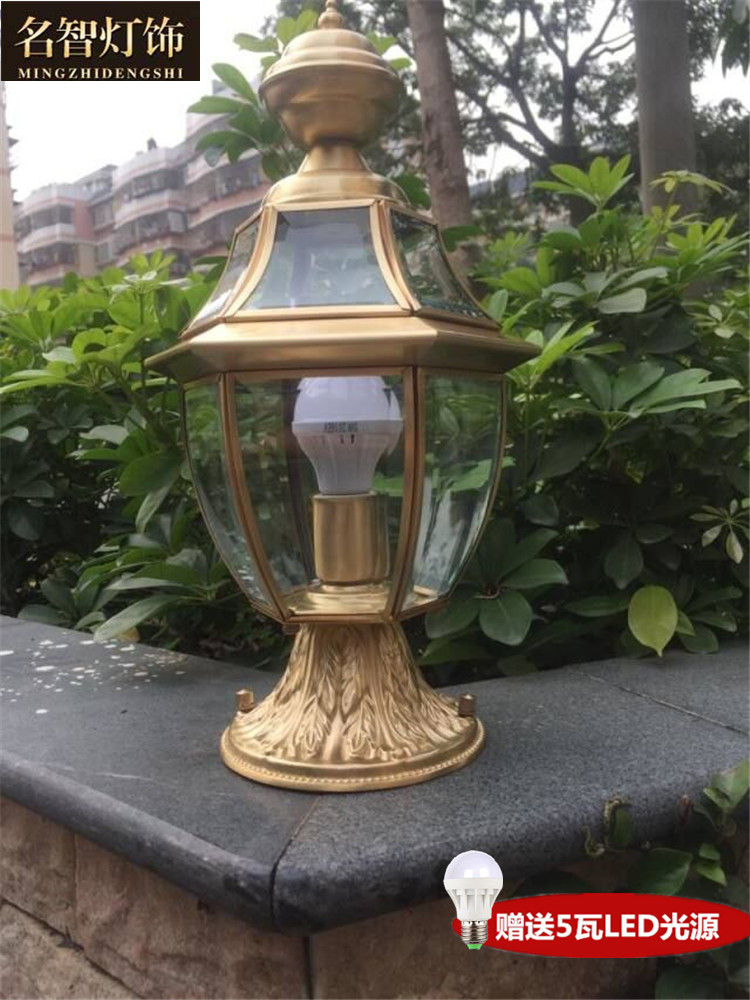 All-copper column head lamp wall head wall lamp outdoor courtyard door post lamp villa led waterproof home fence lamp connection