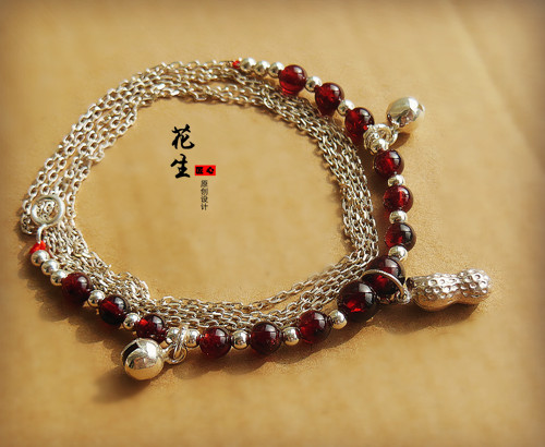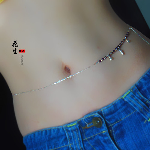 This Life Year Red Rope Waist Rope Pure Silver Bell Pan Peanut Pomegranate Stone Waist Chain Lady handmade to make a foot silver gift