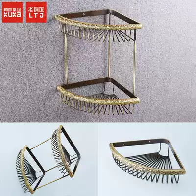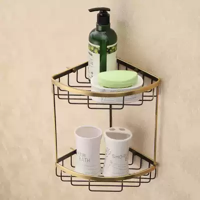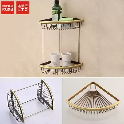 Old coppersmith all-copper European-style bathroom tripod fat storage rack powder room double-layer basket rack Antique