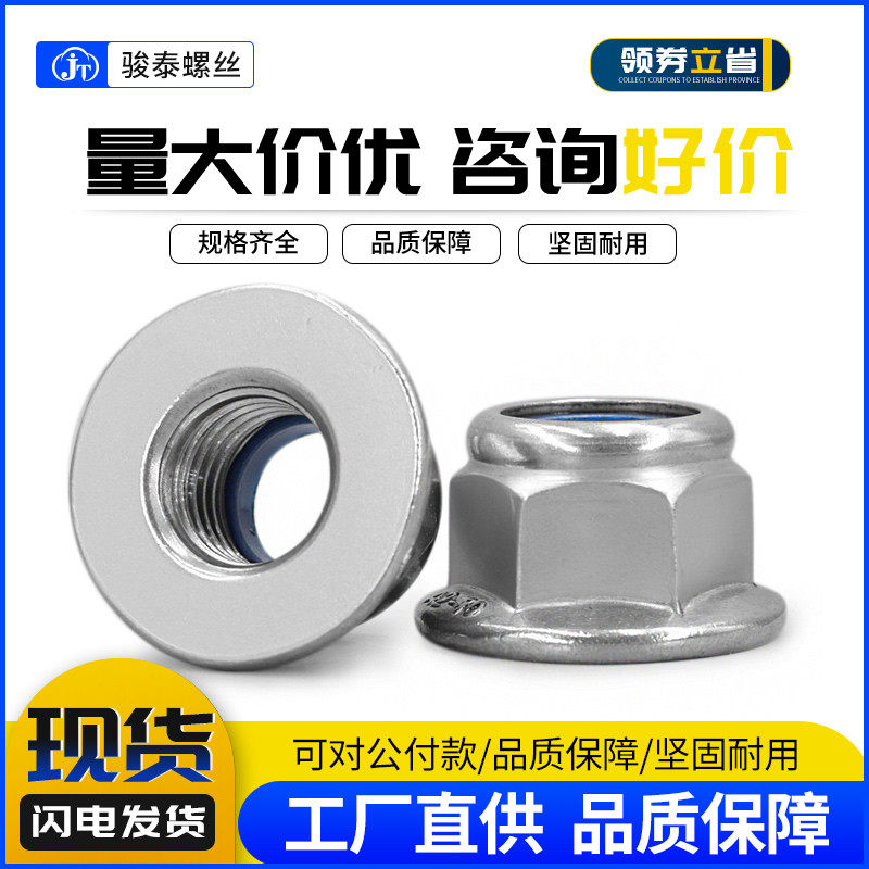 304 stainless steel flange nut M4M5M6M10M12M16 hexagonal cushion nylon anti-lock nut