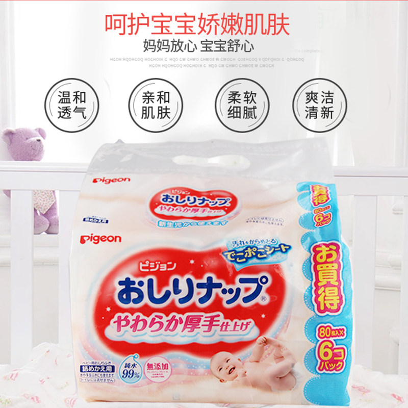Bé pro baby thickened fart wet wipes bag 80 pieces * 6 no fragrant newborn baby wet paper towels