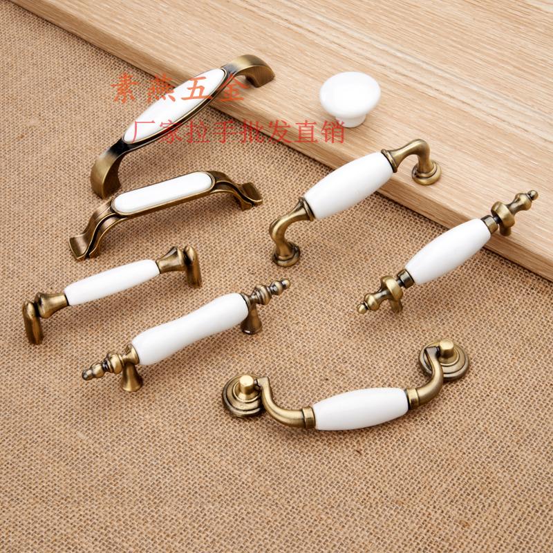 White ceramic hand - handed bronze - European furniture cabinet door handle simulation of ancient pastoral cabinet door drawer small handle