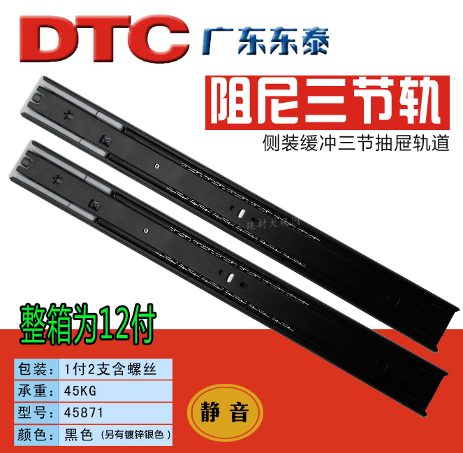 East Tay DTC45 871 Side Mount Damping Hydraulic Buffer Three Rail Drawer Track Slide Rail Black