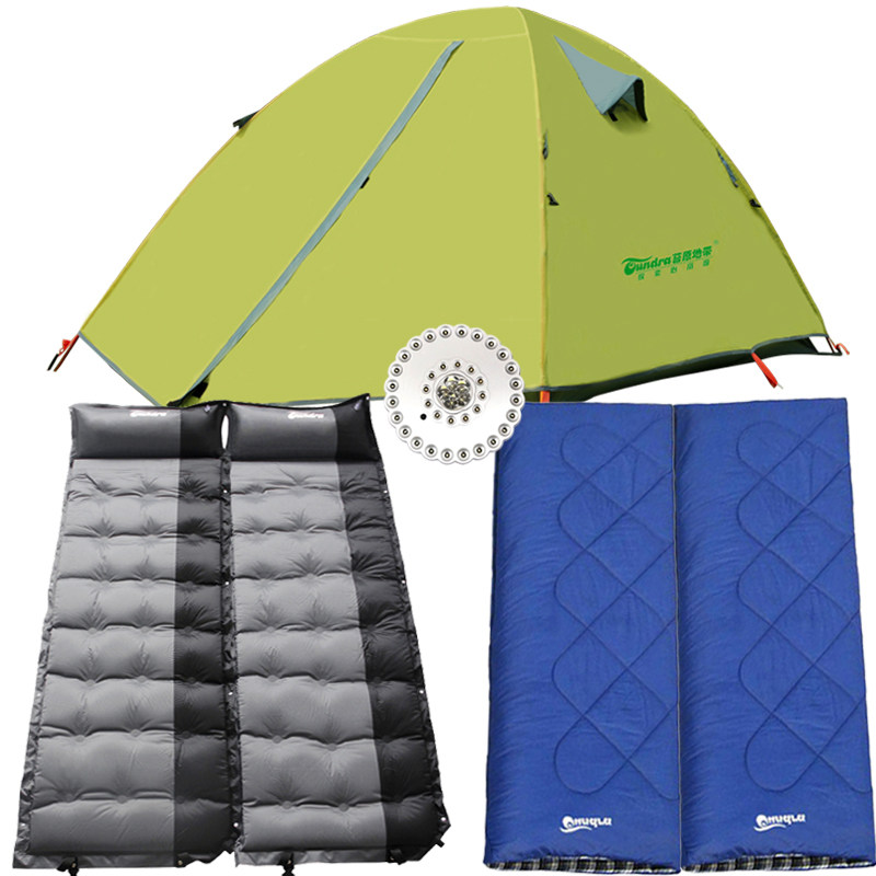 Camping tent Double layer double Tundra 2 spring sleeping bag inflatable moisture proof mat Camping set Outdoor camping tent