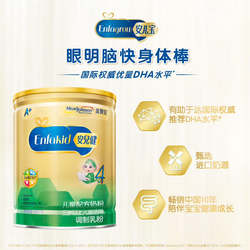 Mead Johnson Anerjian A children's formula milk powder 4-stage 900g canned suitable for babies aged 3-6 years old