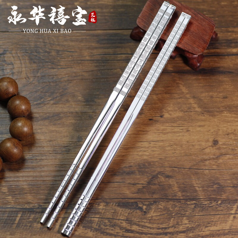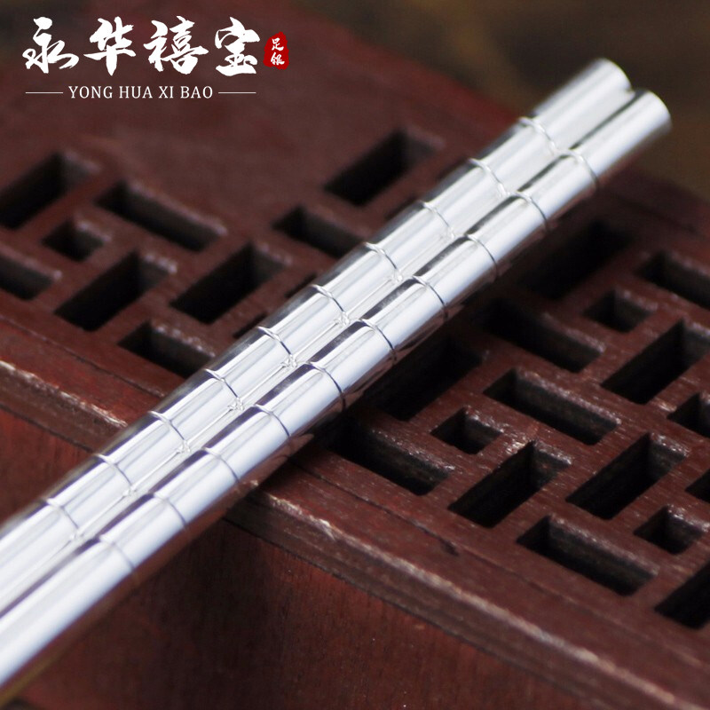 Yonghua Xibao silver chopsticks 999 sterling silver tableware dragon phoenix Momofuku foot silver chopsticks home wedding gifts engraving