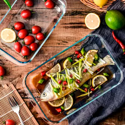 Plate fish plate home new creative baked rice plate microwave oven special plate rectangular steamed fish plate glass tableware