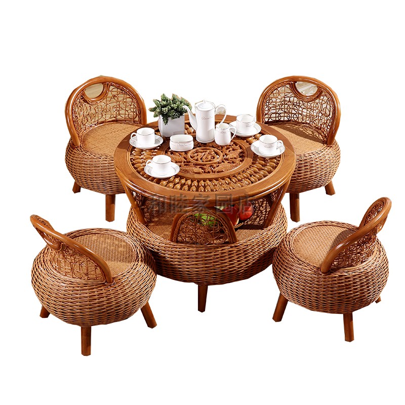 Real rattan choreographer balcony small short stool changing shoes stool rattan chair balcony leisure entrance garden five sets of tea room combined table and chairs