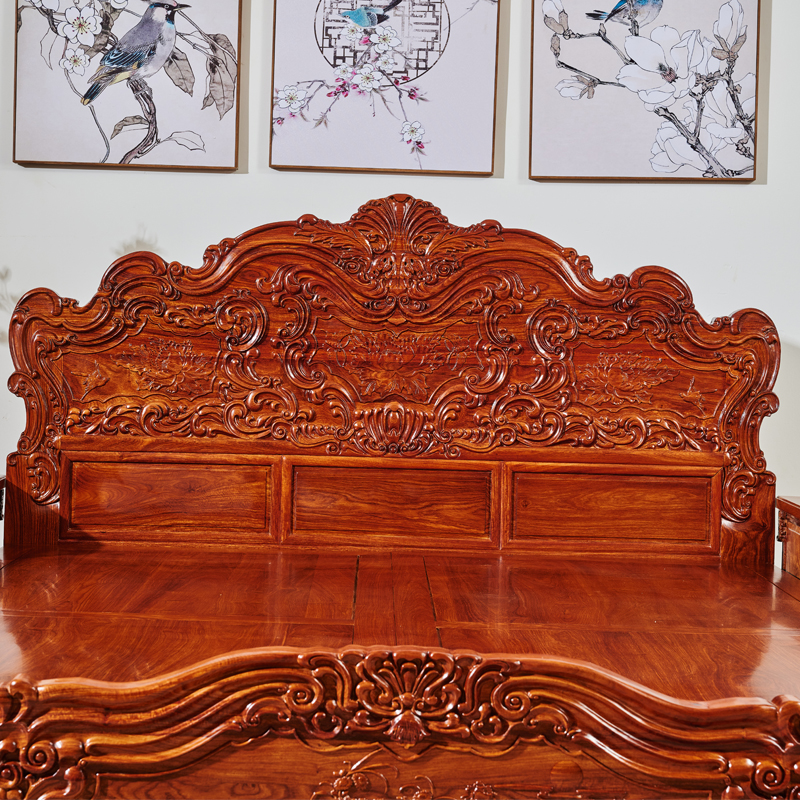 Promotion of red wood furniture Flowers Rich Rhymes Big Bed Hedgehog Purple Sandalwood Oan-style Large Bed Chinese Vintage Solid Wood Bed