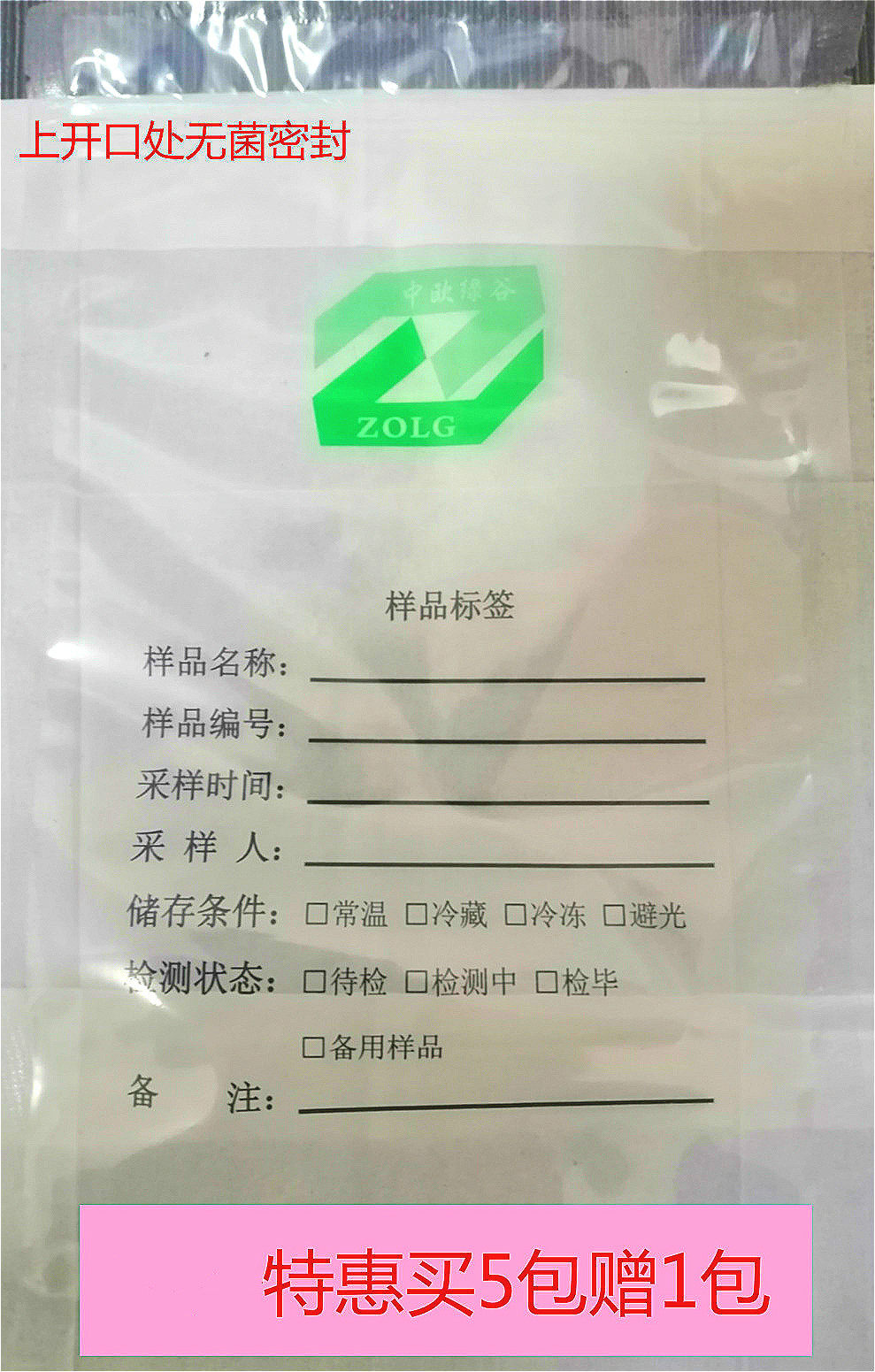 ZOLG-10121 sterile sampling bag 100 bags (with press strip) Central European Green Valley