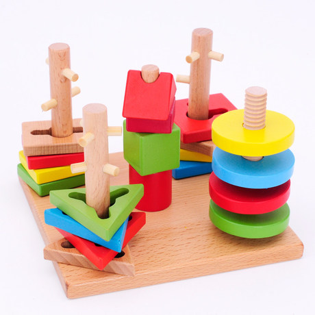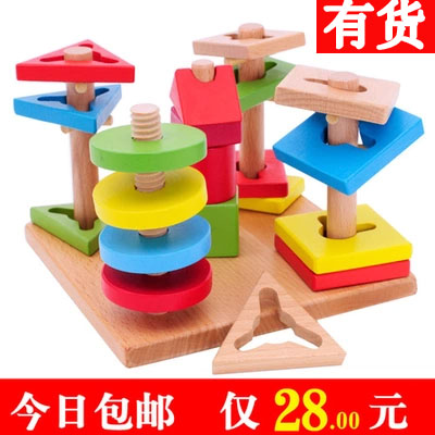 Montessin geometric shape set column pair cognitive graphics intellectual board kindergarten early teaching puzzle building blocks toys 13 years old