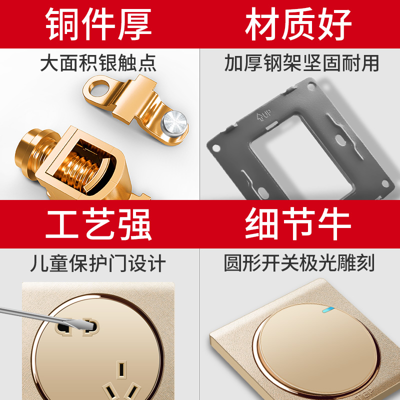 3D fine switch socket household 86 Champagne gold voice information telephone line interface a phone socket