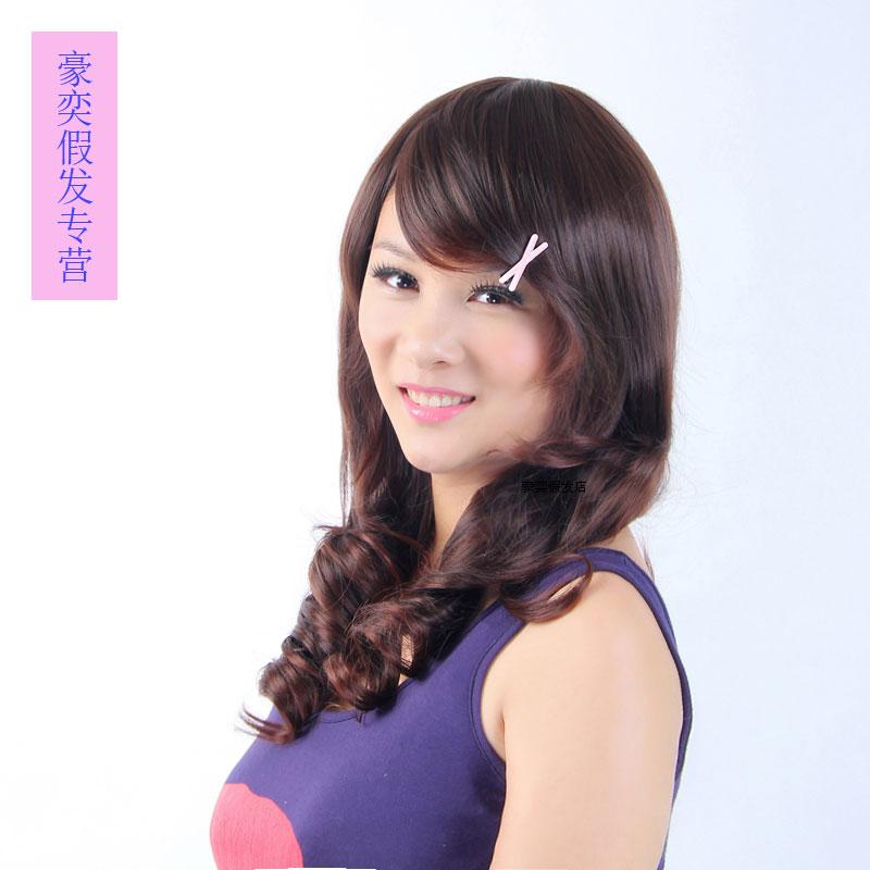 Haoyi long curly wig oblique bangs real scalp top core female matte imported high temperature silk wig