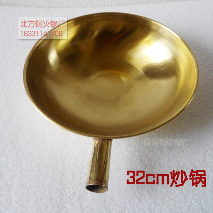Thickened copper wok brass frying spoon double ear copper wok 32CM gas copper pot non-induction cooker special pot