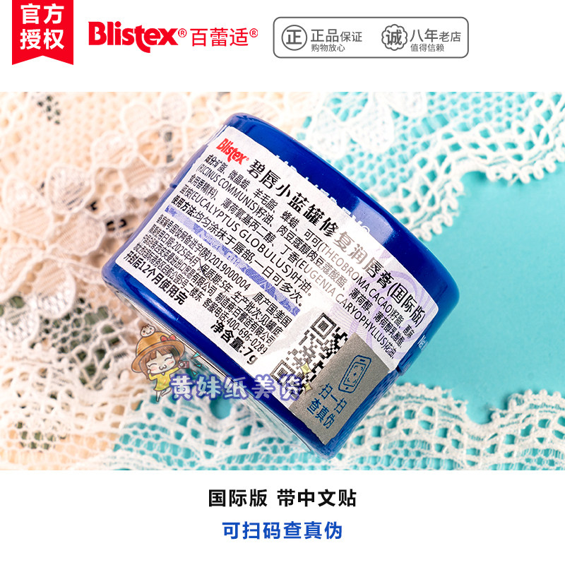 American Blistex belip small blue jar moisturizing lip balm 7g moisturizing and nourishing the bottom colorless can be a lip film