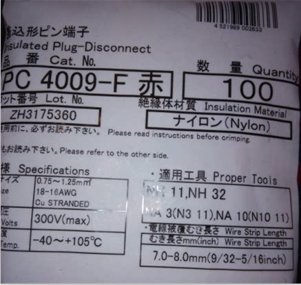 (Japanese origin) Japan-rich Japan Rich-in-stock NICHIFU Cold Crimping terminals PC-4020F PC4020-F Spot