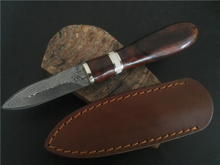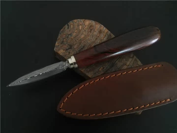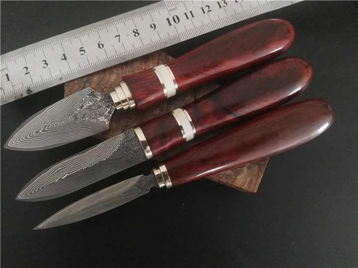 Set of three handmade knives tea knife tea cone tea needle Damascus Steel knife embryo selected yellow sandalwood handle