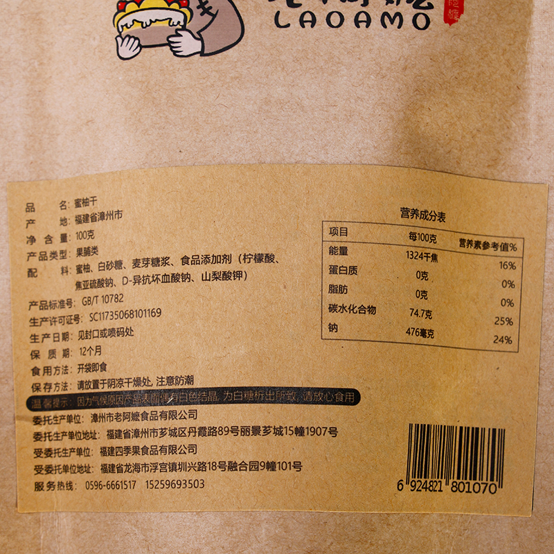 Old lady's honey pomp dried grapefruit peel dry grapefruit pomp dry Fujian and creek honey pomp candied fruit and candied fruit 100g