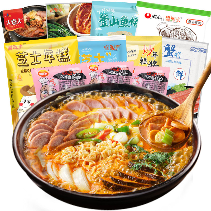 Korean army hot pot ingredients Cheese rice cake combination set Korean Ministry of pot ingredients Fish cake base material noodle set