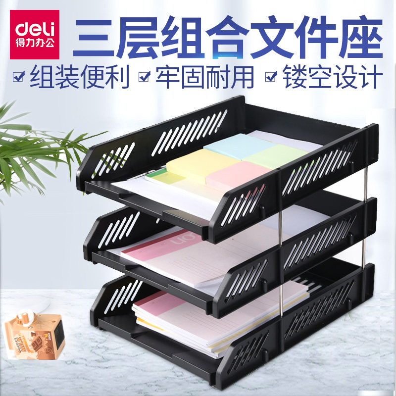 (A variety of optional)Deli document frame Office document rack Triple four thickened plastic multi-layer document bar data rack File bag folder storage box tray File rack