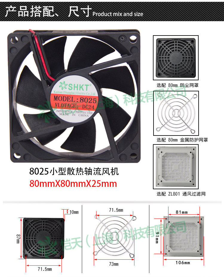 8025 24V Oiled 8025 12V Oiled 8025 24V Bearings 8025 12V Bearings 80 Matching Iron mesh 80 matching