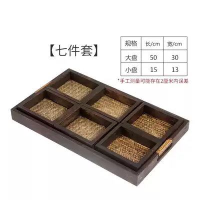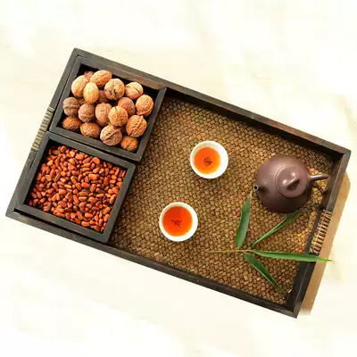 Thai bamboo woven retro wooden dry brewed tea tray club home Japanese rectangular tray solid wood tea set combination