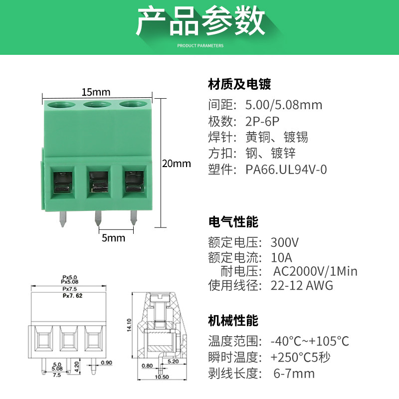 KF128 terminal block 5 0 5 08mm screw type PCB2P 3P splicable copper foot connector circuit board