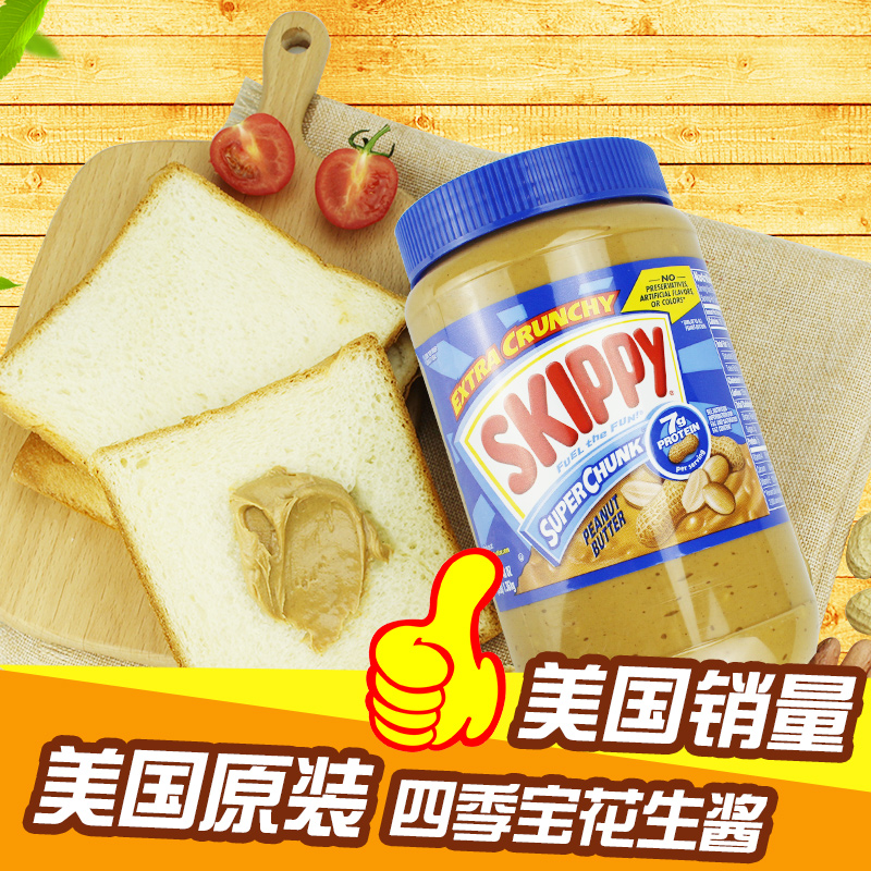American Original Imported SKIPPY All Season Treasure Coarse Grain Peanut Butter No Preservative Breakfast Bread Toast 1 36kg