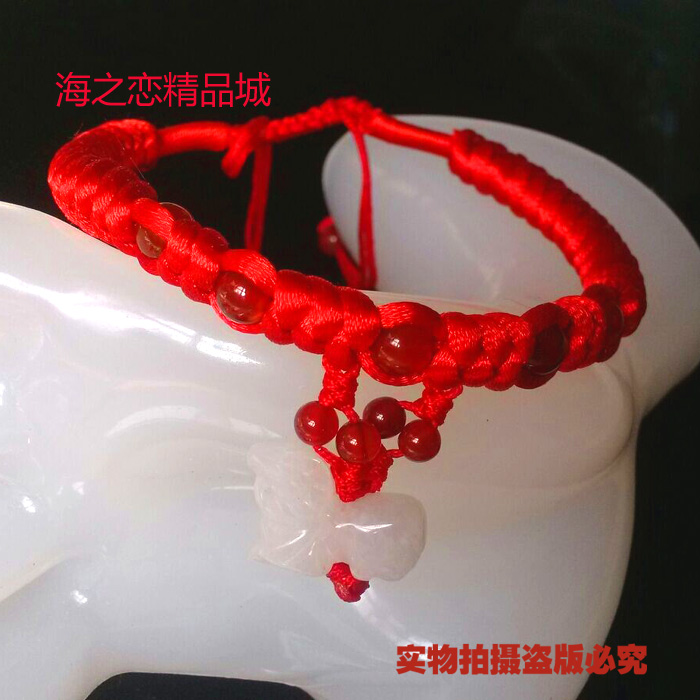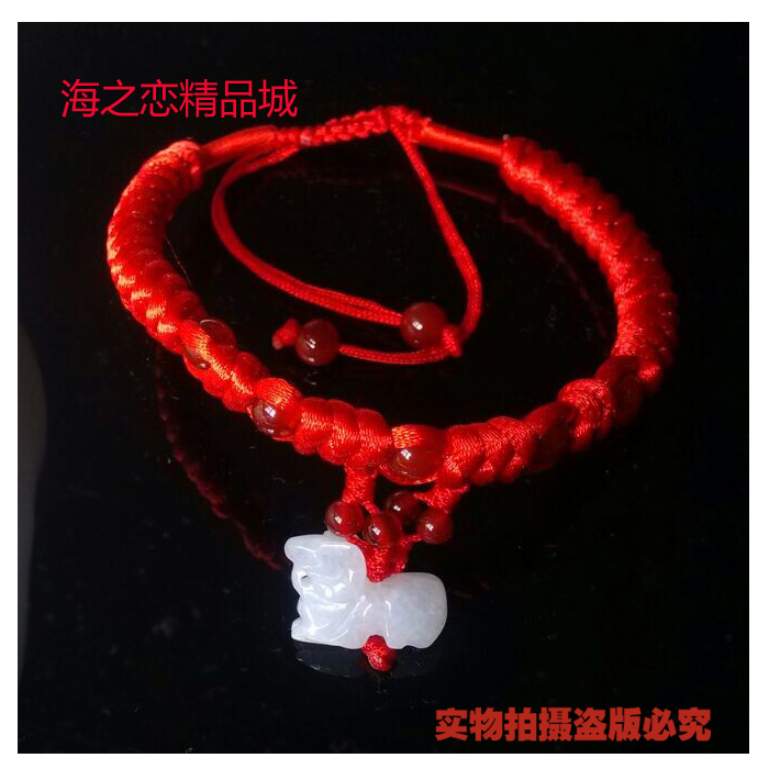 Zodiac sheep Jade jade red rope anklet woven red foot rope Monkey chicken dog Pig thick rope Ox evil men and women custom