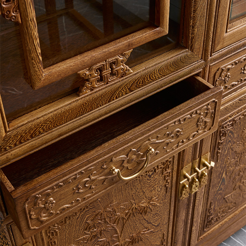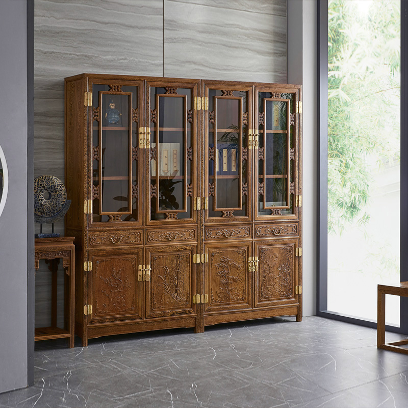 Mahogany furniture All chicken wing wood study glass bookcase combination Antique Chinese solid wood floor-to-ceiling bookshelf bookcase