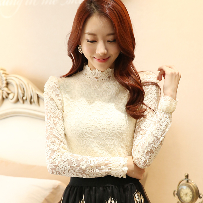 Chiffon lace base shirt long sleeve 2021 new spring fashion women's top high-end high-end small shirt Western style